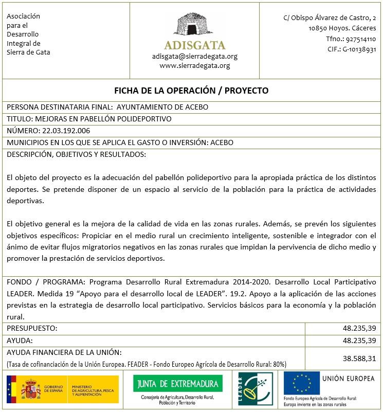 Subvención Leader DLP - Mejoras en pabellón polideportivo