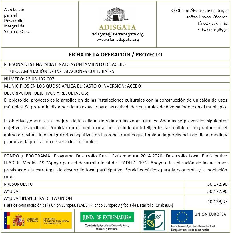 Subvención Leader DLP - Ampliación de instalaciones culturales