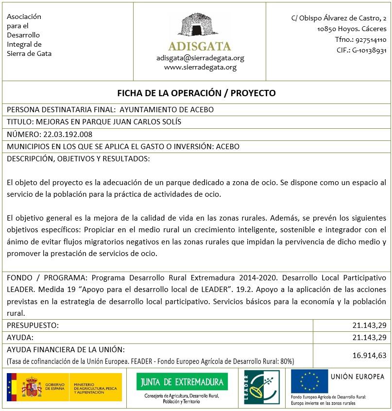 Subvención Leader DLP - Mejoras en parque Juan Carlos Solís